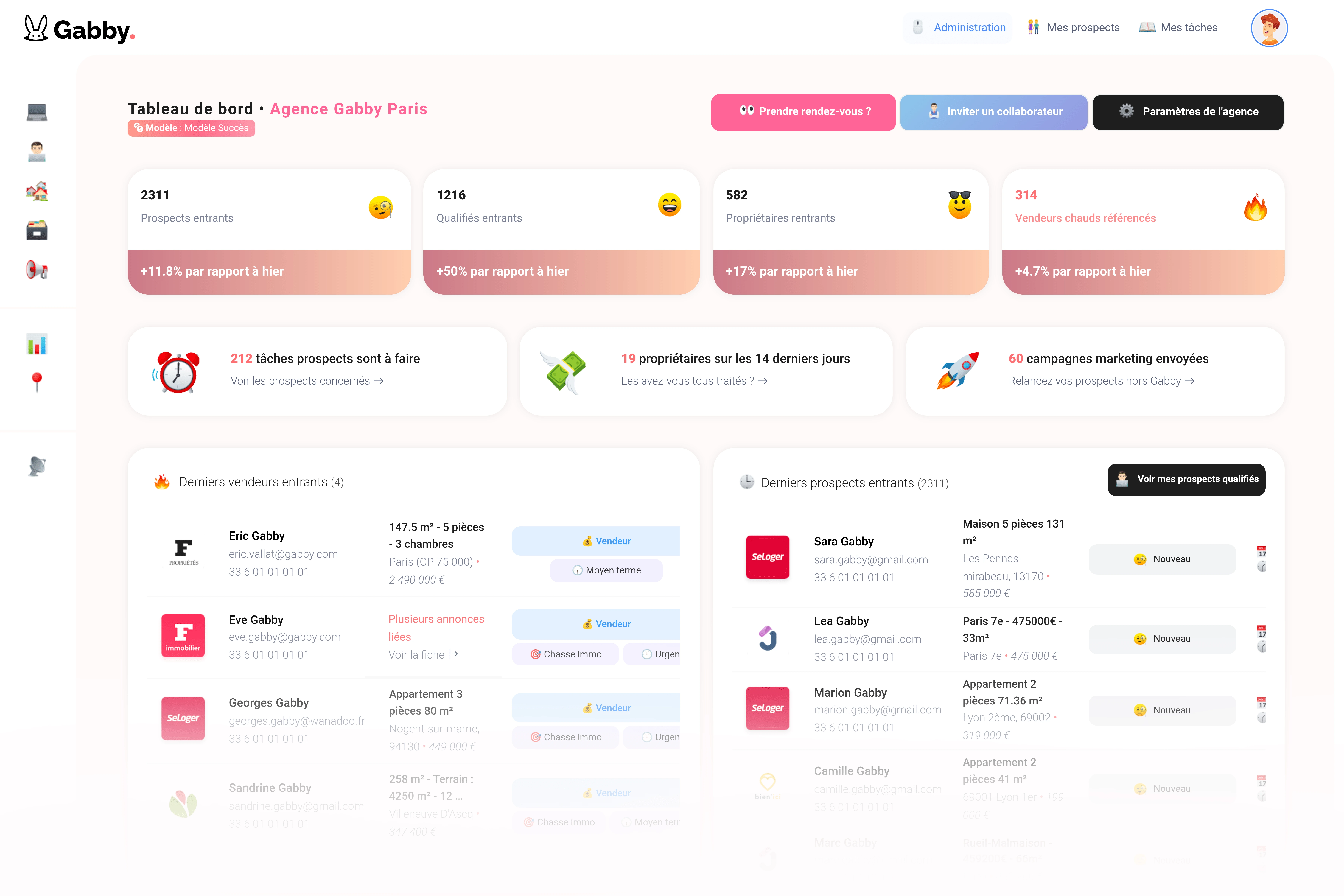 Agences, portails, réseaux : si des contacts arrivent depuis vos annonces, Gabby vous sert forcément.